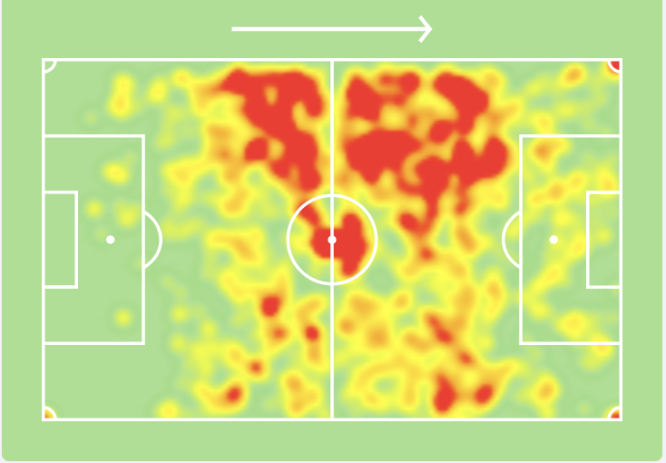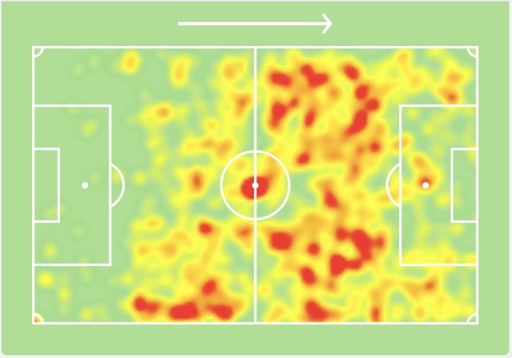Notamos su presencia en el corazón de su equipo y el mapa de calor de la temporada 2021-2022 así lo demuestra (mapa de calor del 22/04/2020)