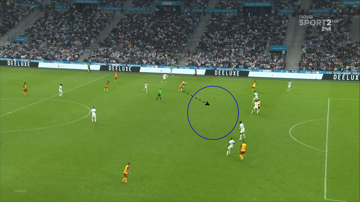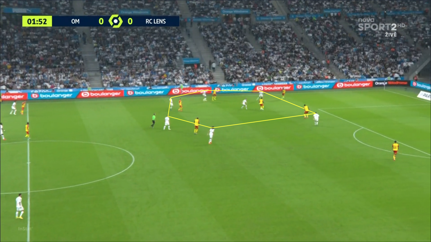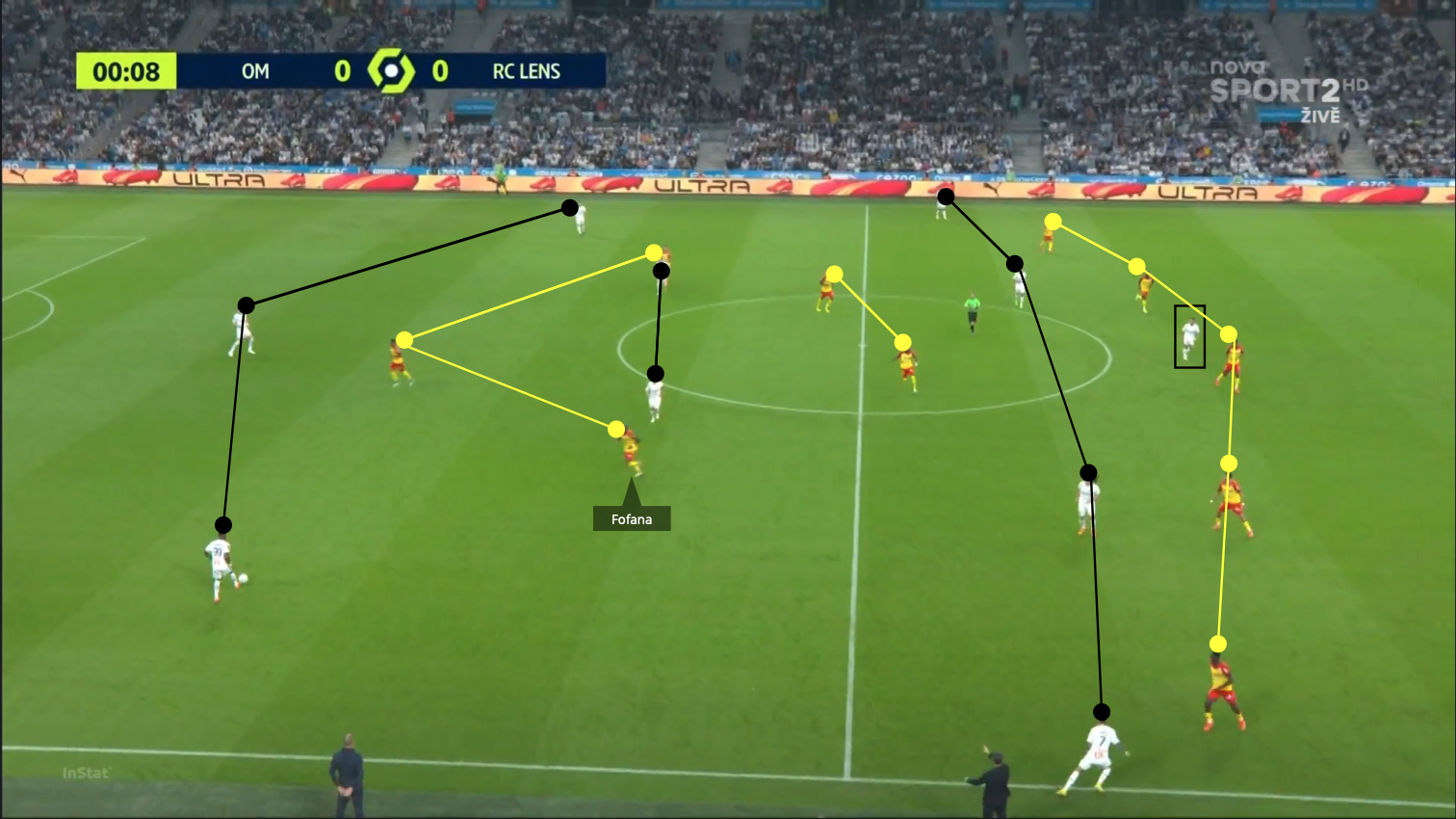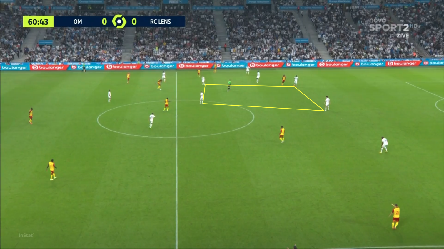 Esta imagen fue capturada deliberadamente en un momento de posesión de Marsella, el primero, ya que esta configuración de posesión dominó gran parte del partido.