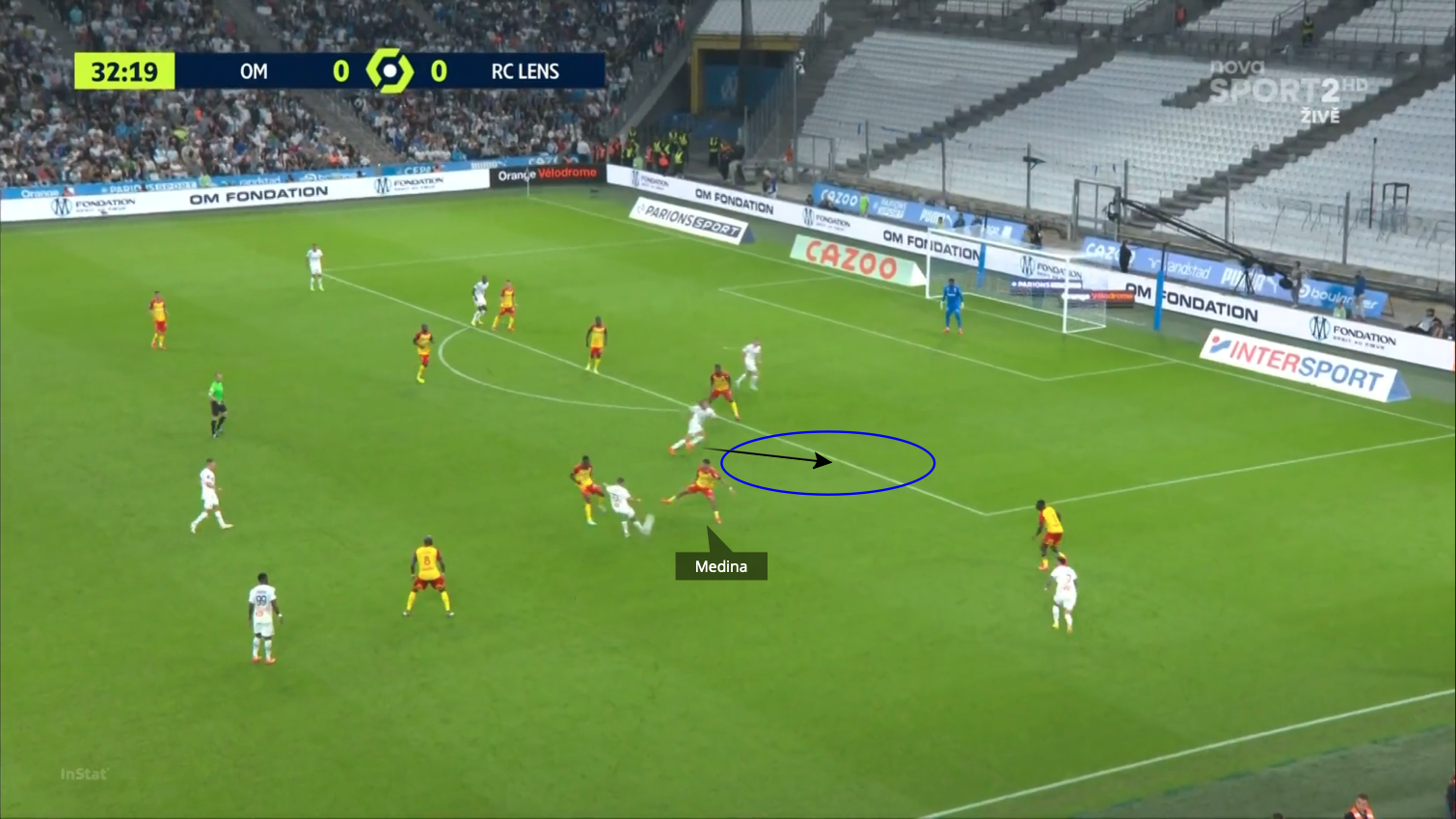 Con la subida corta hecha por brice sambaInmediatamente se creó una zona de presión alrededor del portador de la pelota que se vio bloqueado.