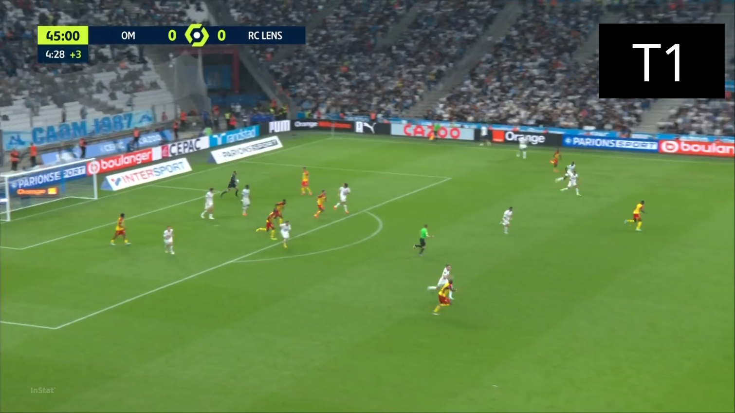 523 Lensois defensivo contra un rebote de 3421 para los marselleses, vi la audacia.