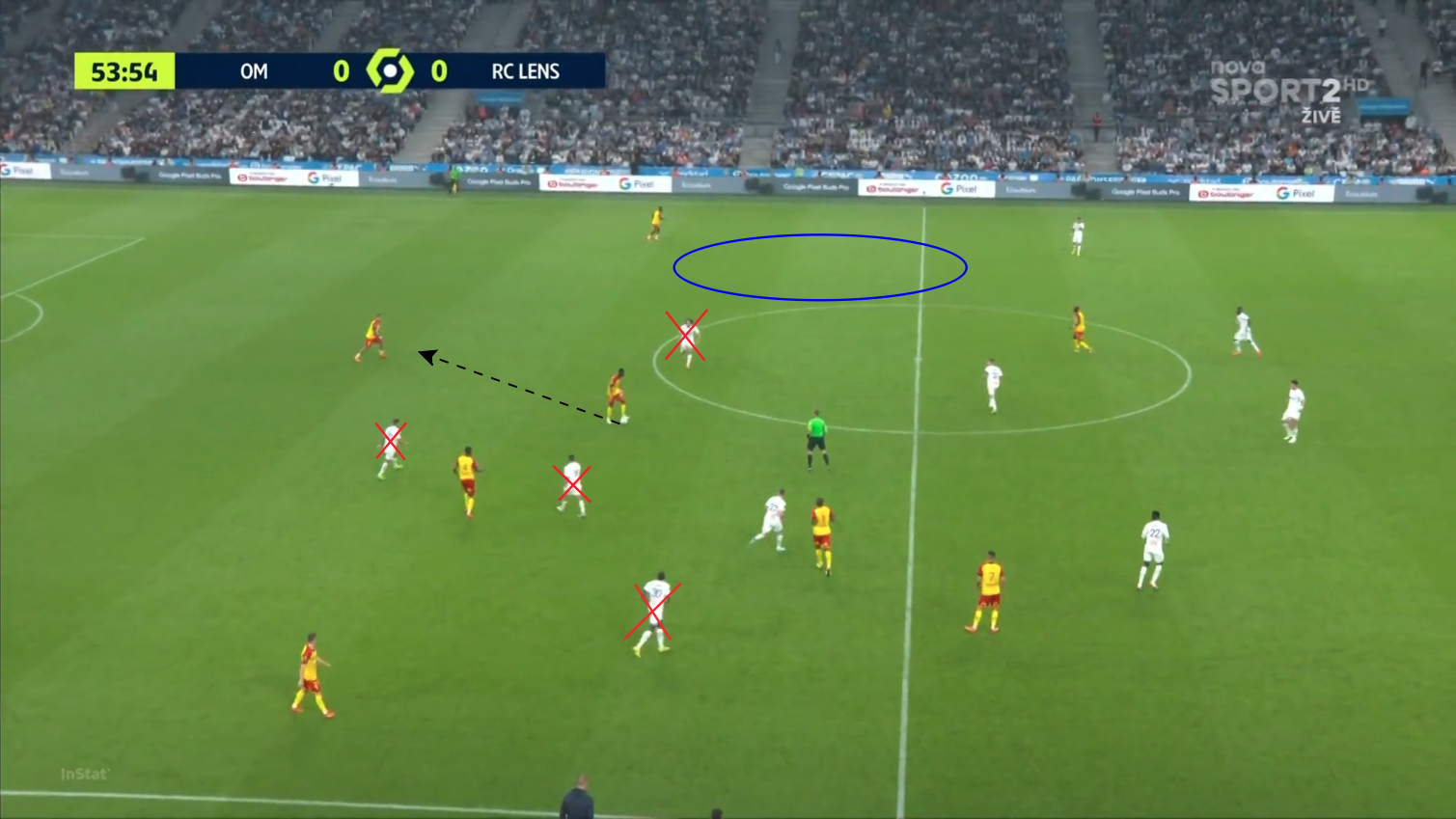Lo interesante de entender aquí es la osadía de Lensois desde los primeros minutos del partido en el Vélodrom.
